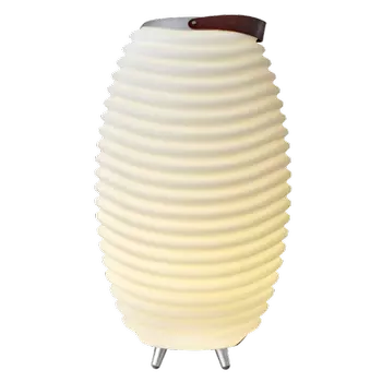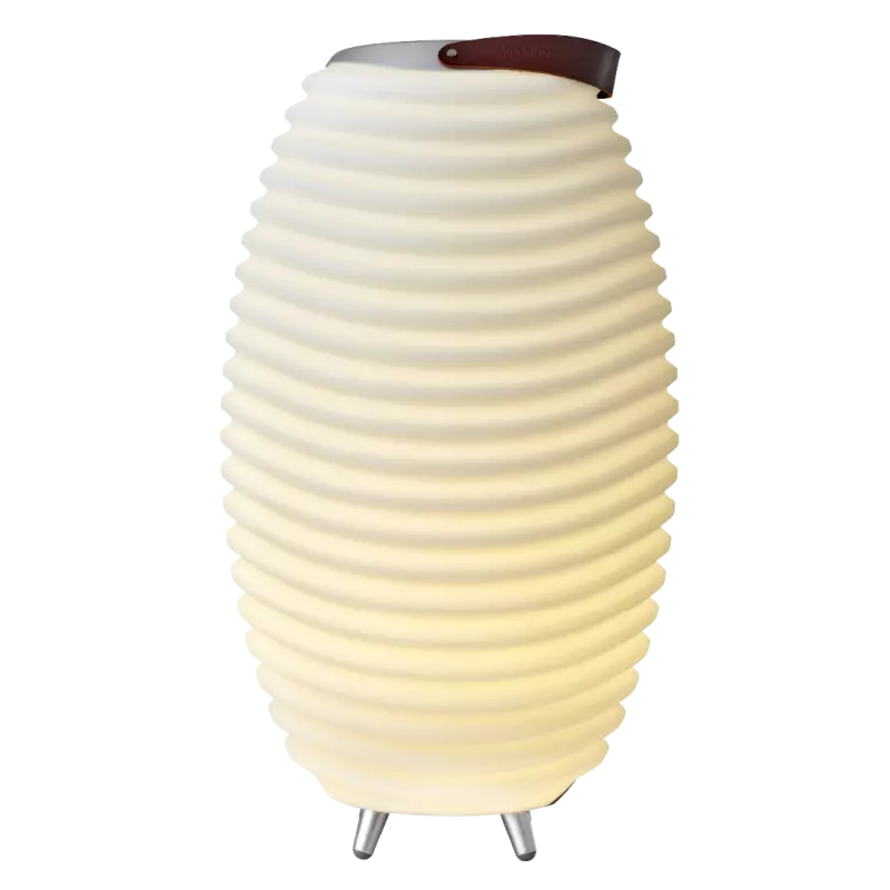 Kooduu Synergy dimbare design LED-lamper med 4 lysintensiteter, en Bluetooth-høyttaler og en drikkeholder eller vinkjøler i ett. Høyttaleren til Synergy høres like bra ut som den ser ut takket være Kooduus Bright Sound Technology™, en modul som kombinerer varmt lys med høy kvalitet og balansert lyd.